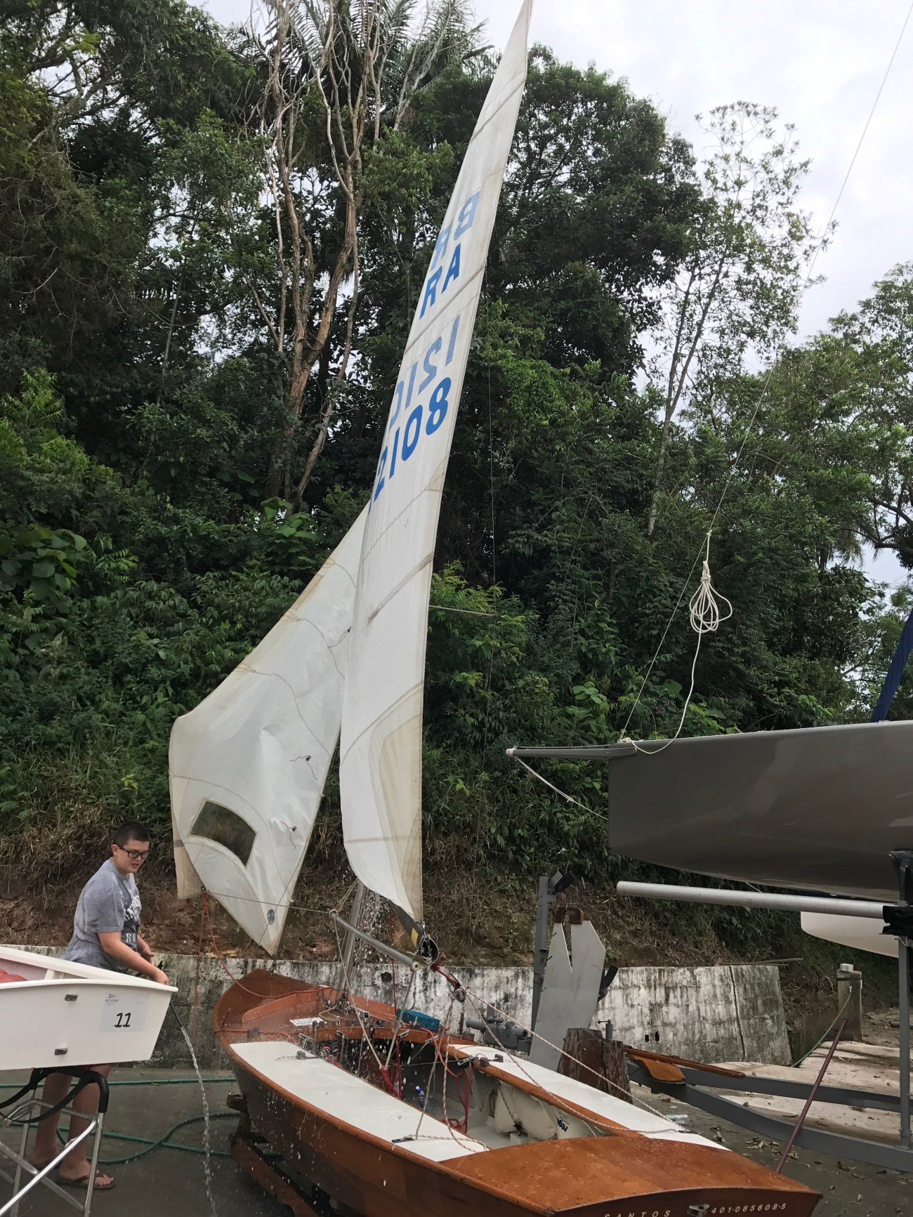 Também aproveitamos pra trocar alguns elásticos, mas foi praticamente só isso que tivemos que fazer pra que ele estivesse pronto pra Regata de Abertura do SPYC no dia seguinte!