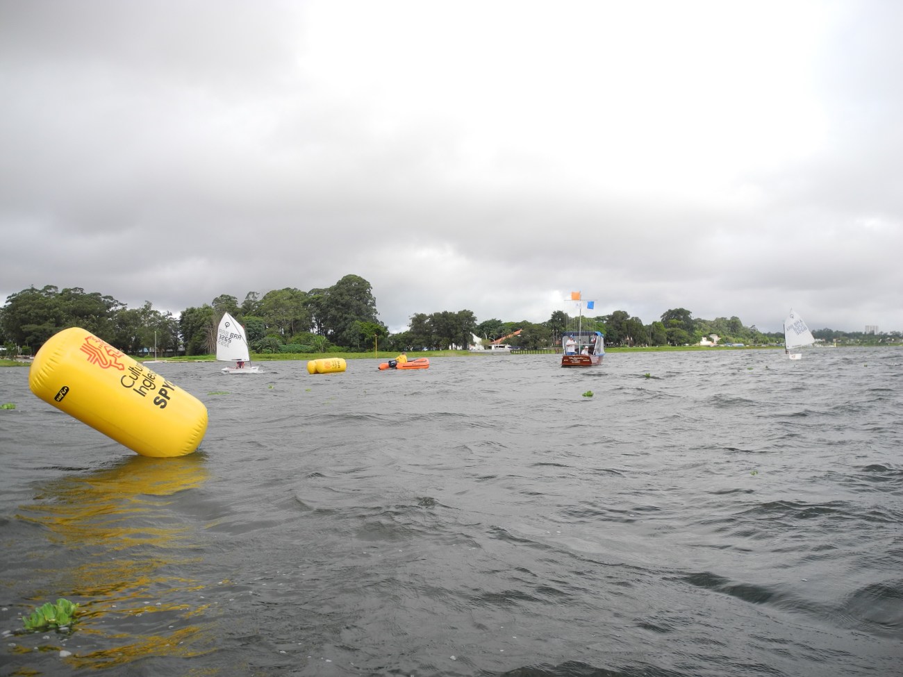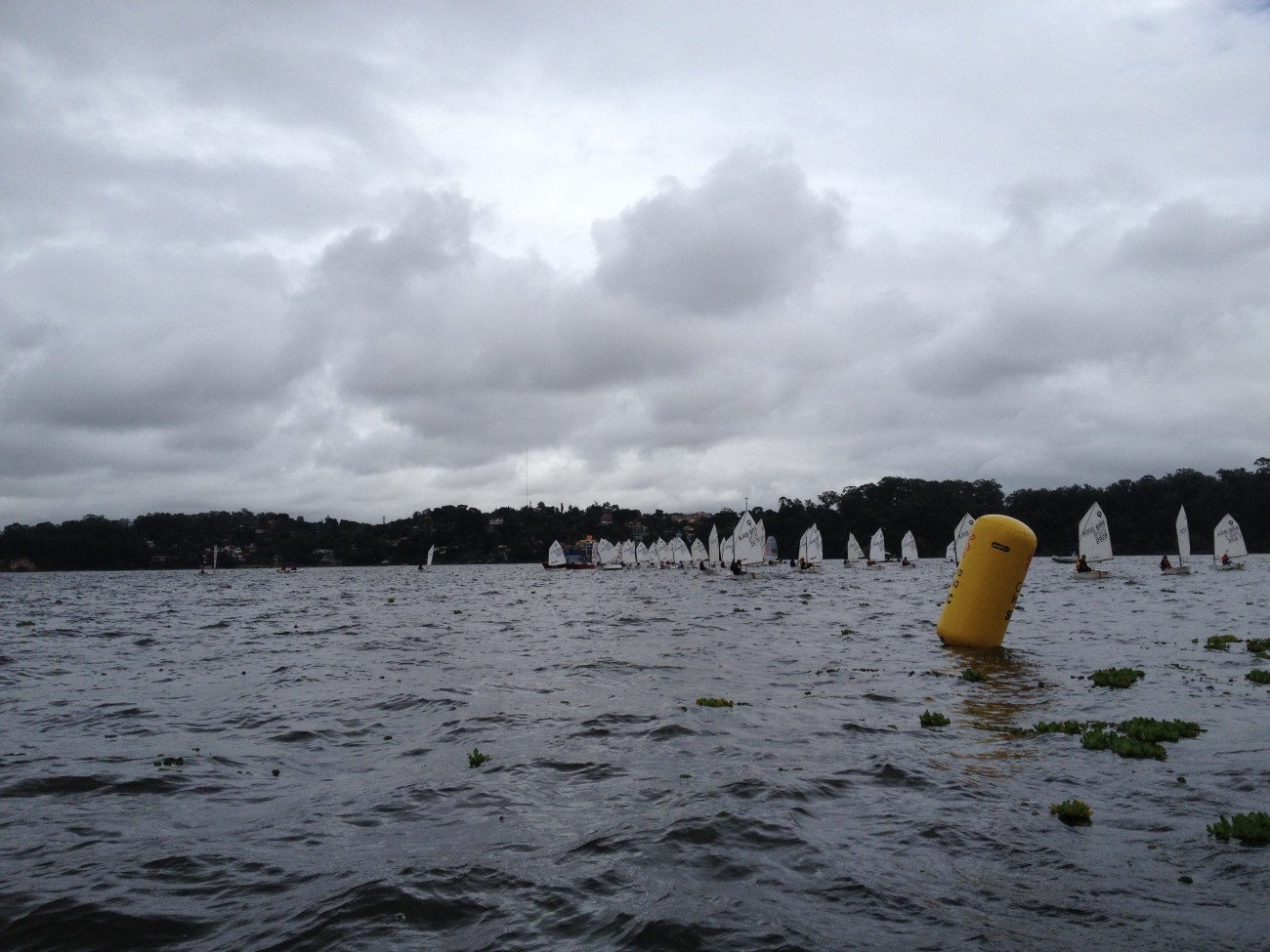 Olho e vejo que a comissão estava começando a recolher as bóias… já tinham se passado 3 horas de regata! Resolvi ir até lá e explicar que ainda tinham 2 optimists tentando terminar o contravento, que era a primeira regata de percurso deles e que estavam se esforçando pra chegar até a linha… não sabia que resposta encontraria, e a comissão me disse que se eles estavam tentando eles iriam esperar!