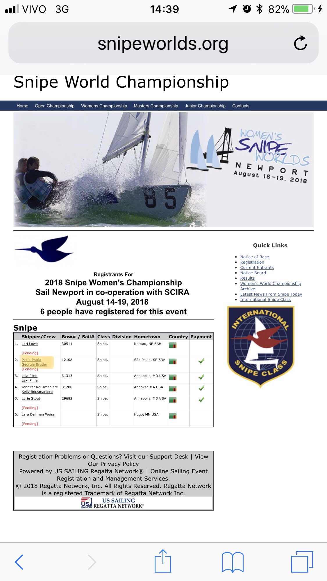 Paola Prada e Georgia Bruder vão competir no Mundial Feminino de Snipe em Newport em agosto deste ano!