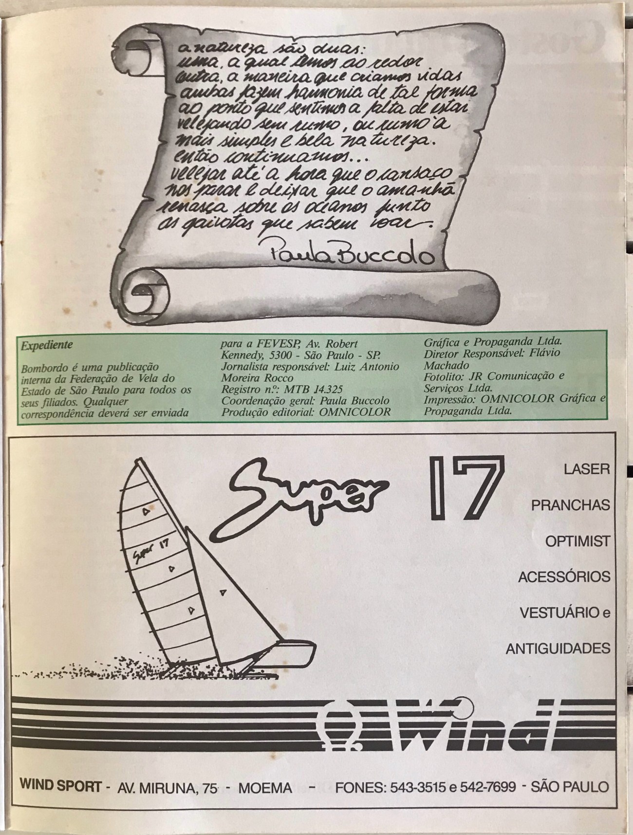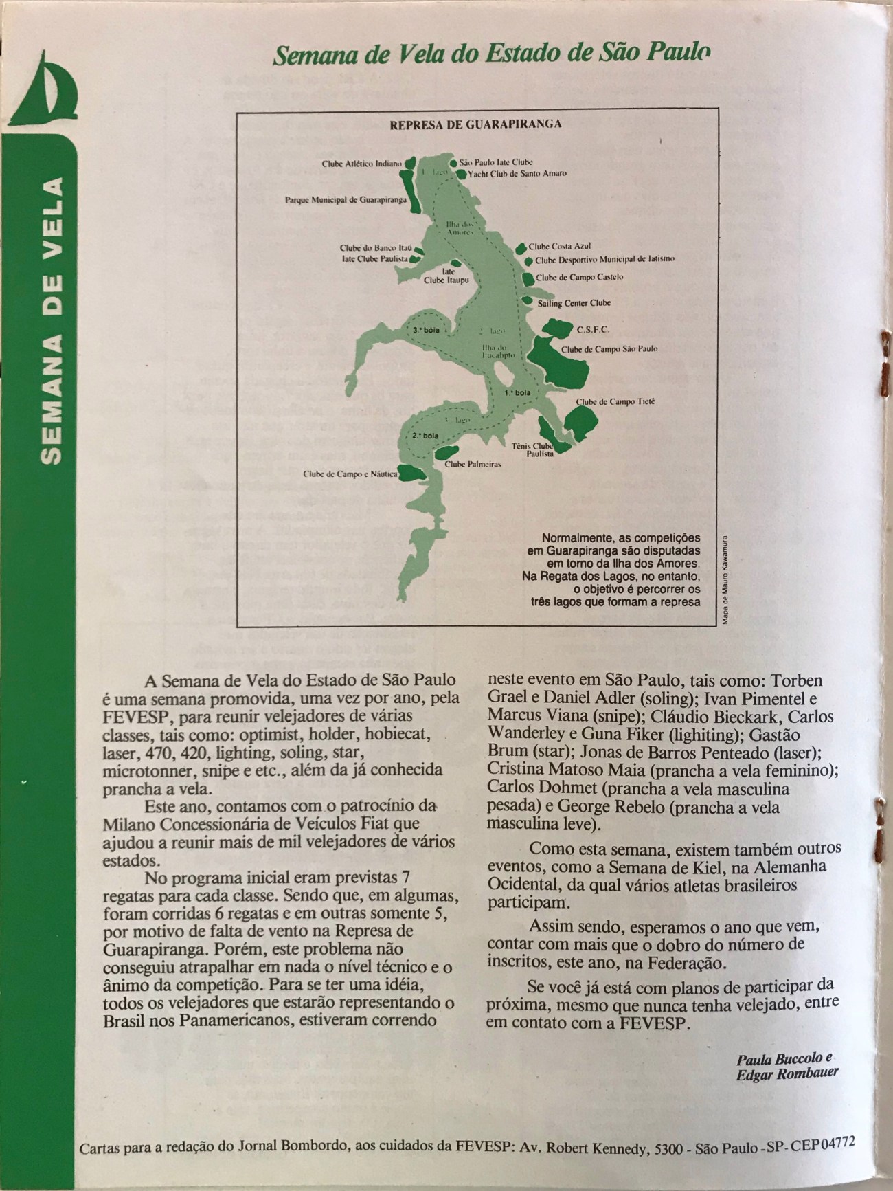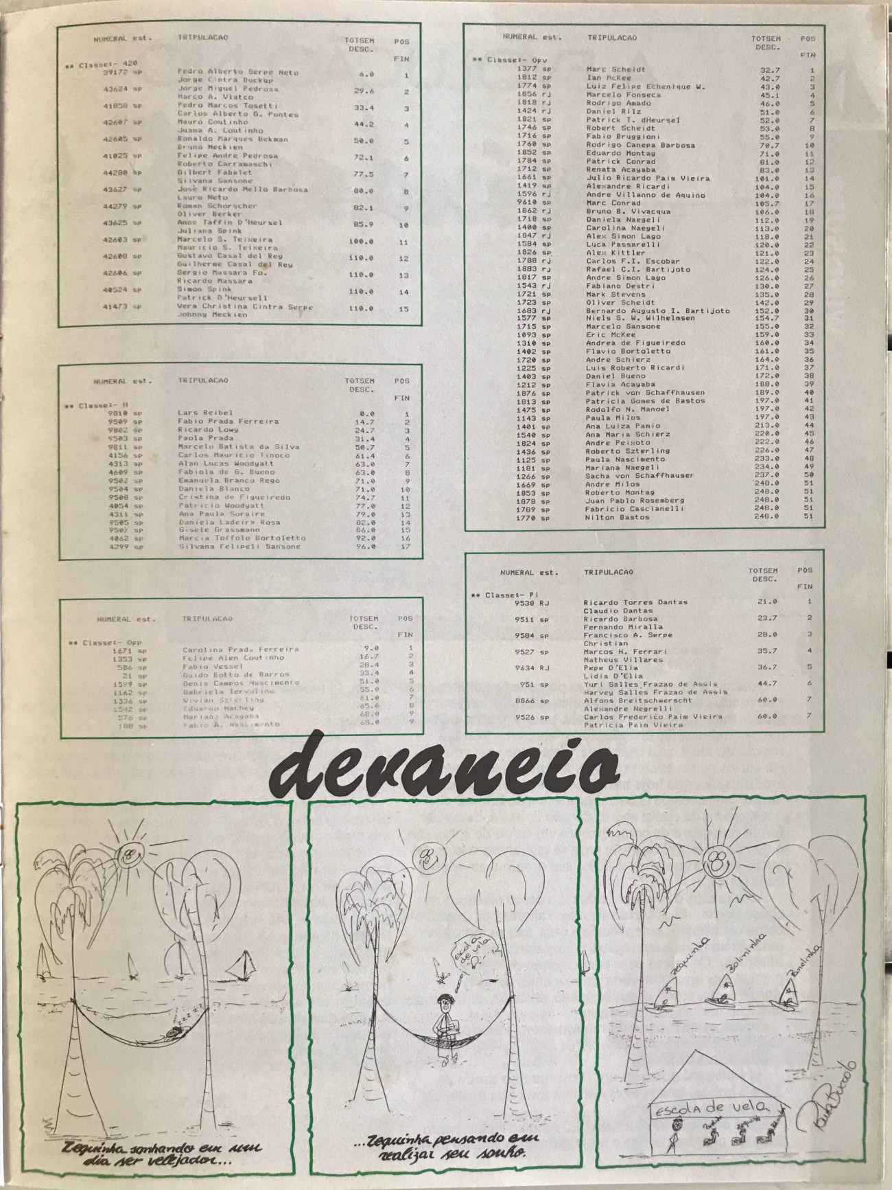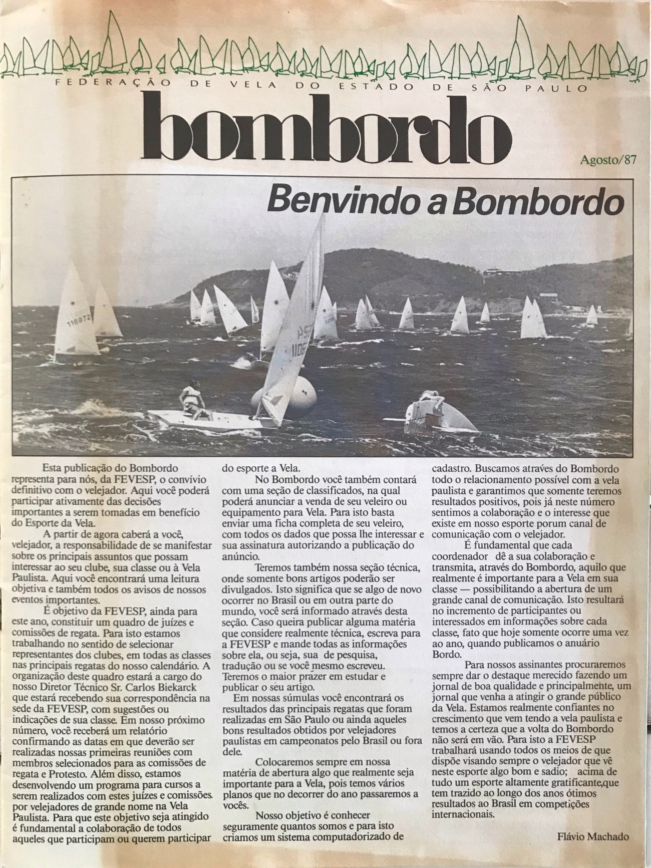 Outro dia o Peter Comber mandou umas fotos da sumula da Semana de Vela de São Paulo de 1987, a Ju, esposa dele tinha esta BOMBORDO guardada e super bem conservada! Claro que pedi emprestado pra copiar e compartilhar aqui!!!!