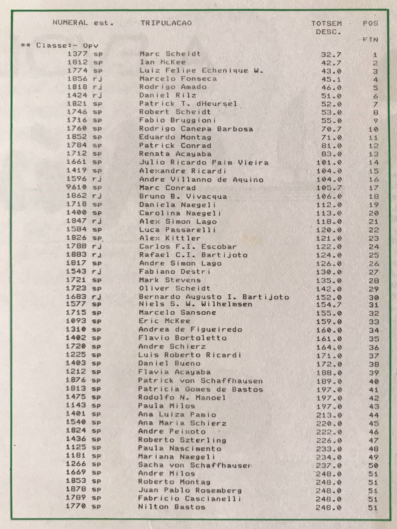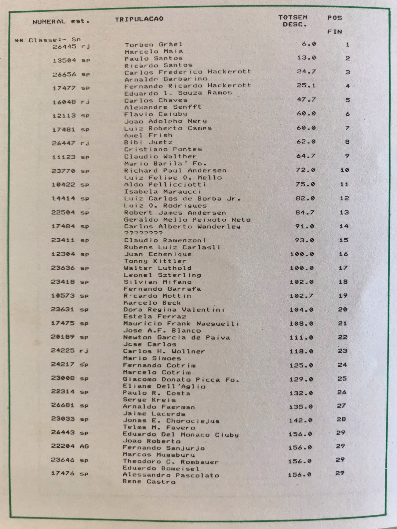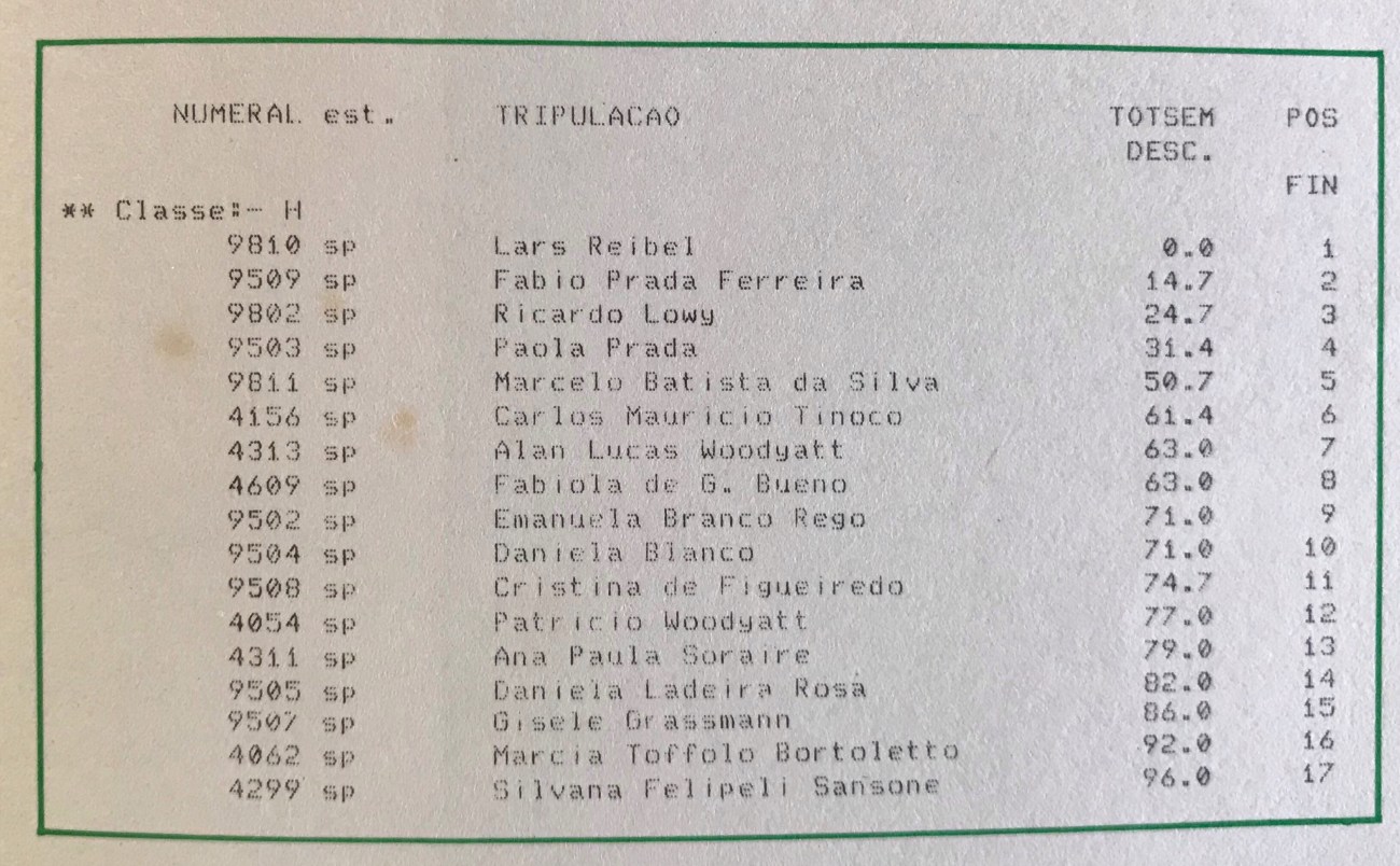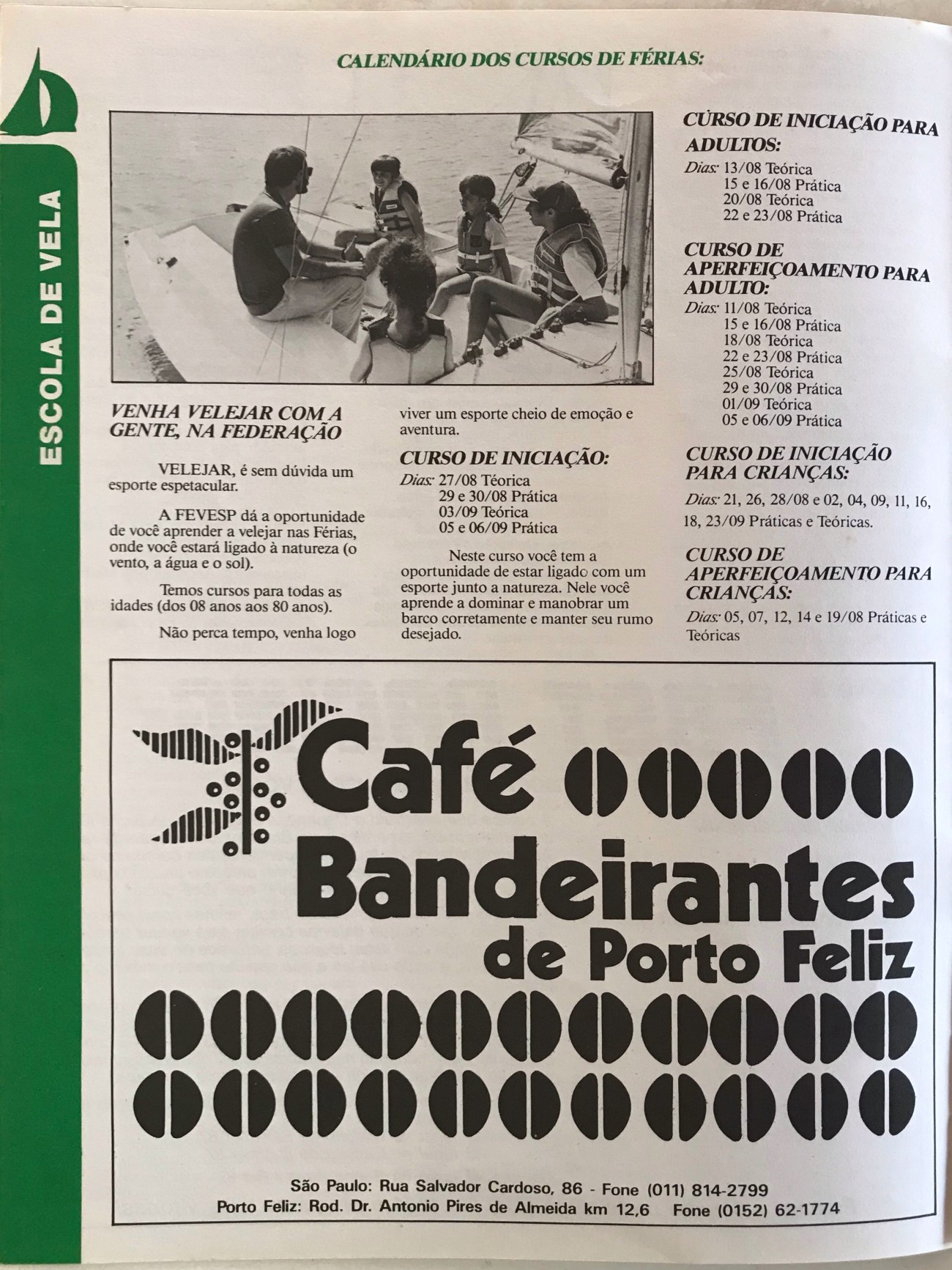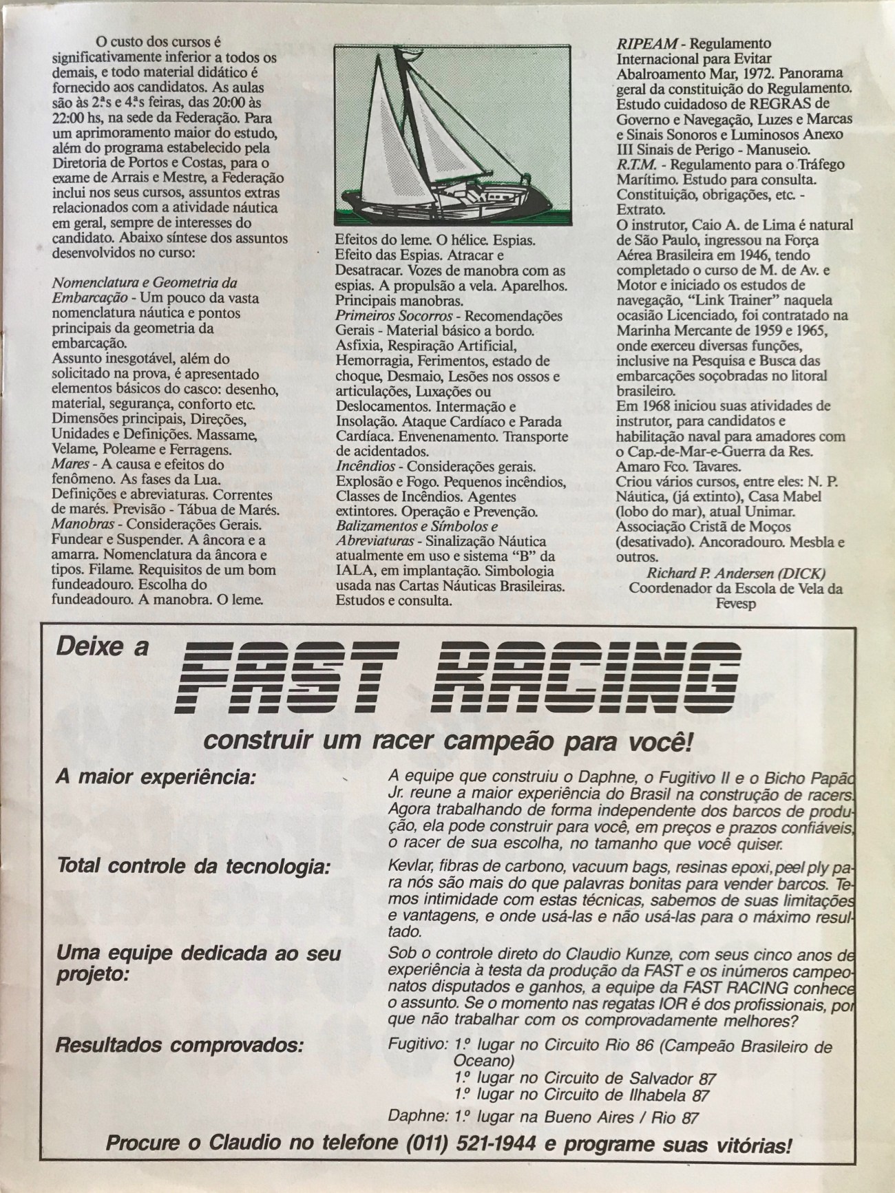Outro dia o Peter Comber mandou umas fotos da sumula da Semana de Vela de São Paulo de 1987, a Ju, esposa dele tinha esta BOMBORDO guardada e super bem conservada! Claro que pedi emprestado pra copiar e compartilhar aqui!!!!
