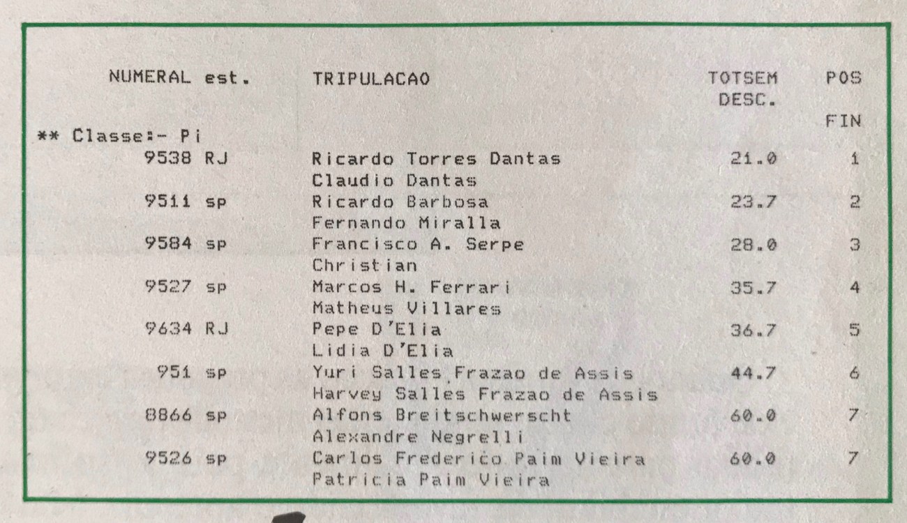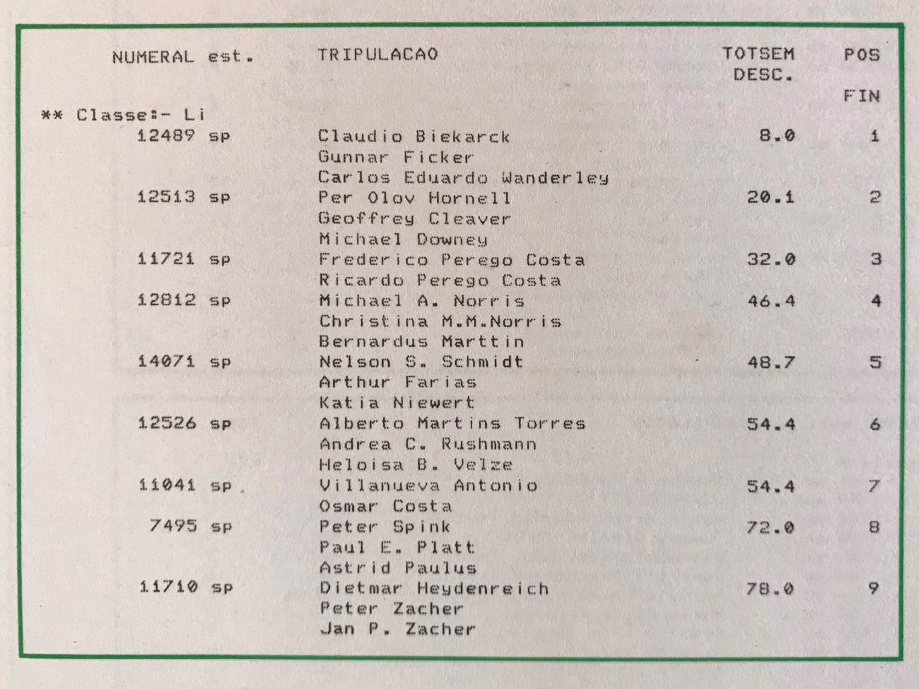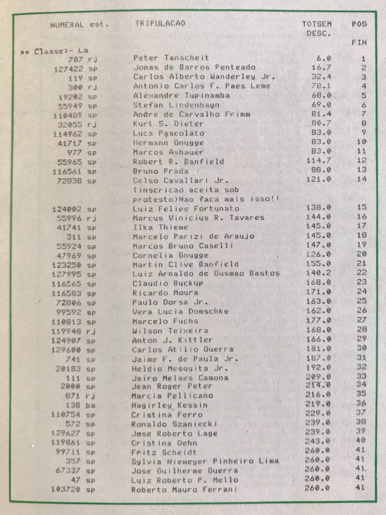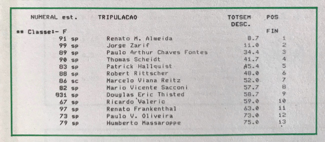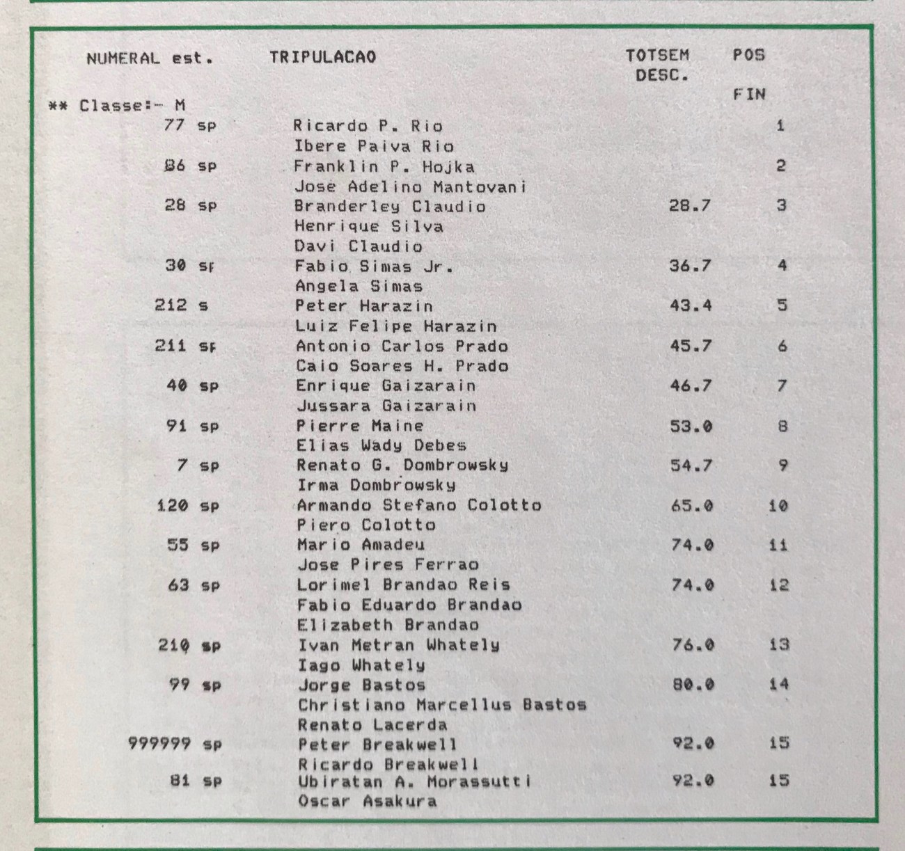 Outro dia o Peter Comber mandou umas fotos da sumula da Semana de Vela de São Paulo de 1987, a Ju, esposa dele tinha esta BOMBORDO guardada e super bem conservada! Claro que pedi emprestado pra copiar e compartilhar aqui!!!!