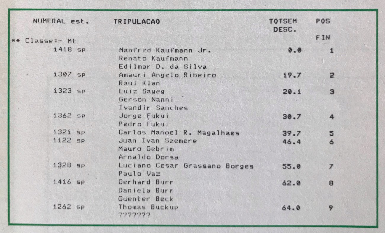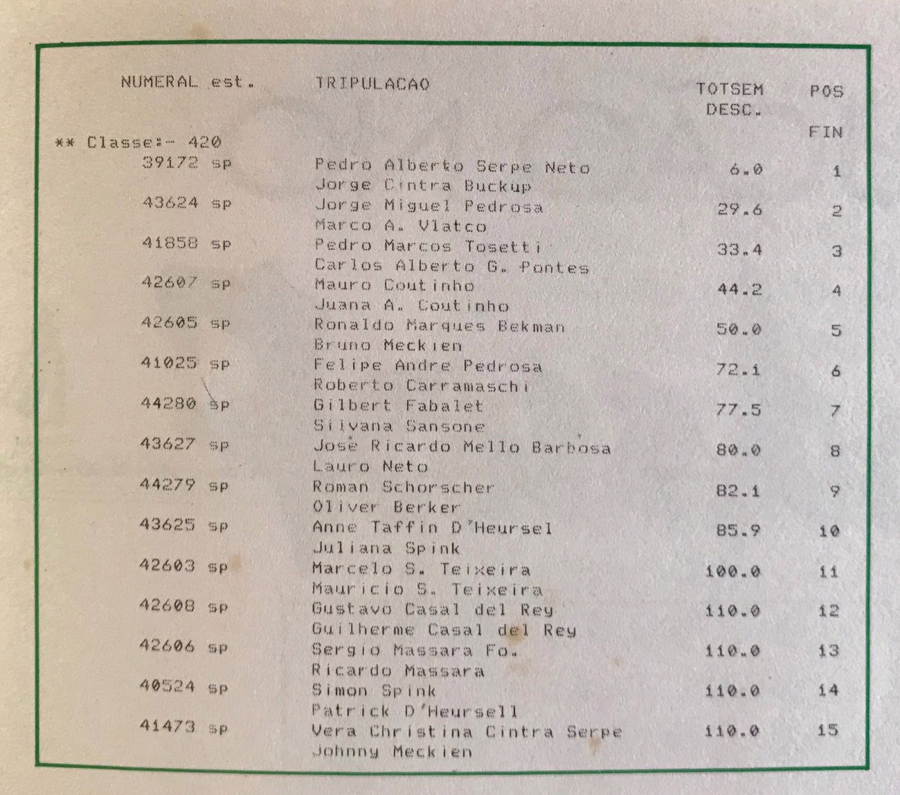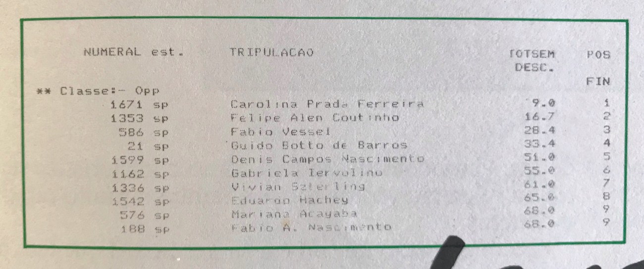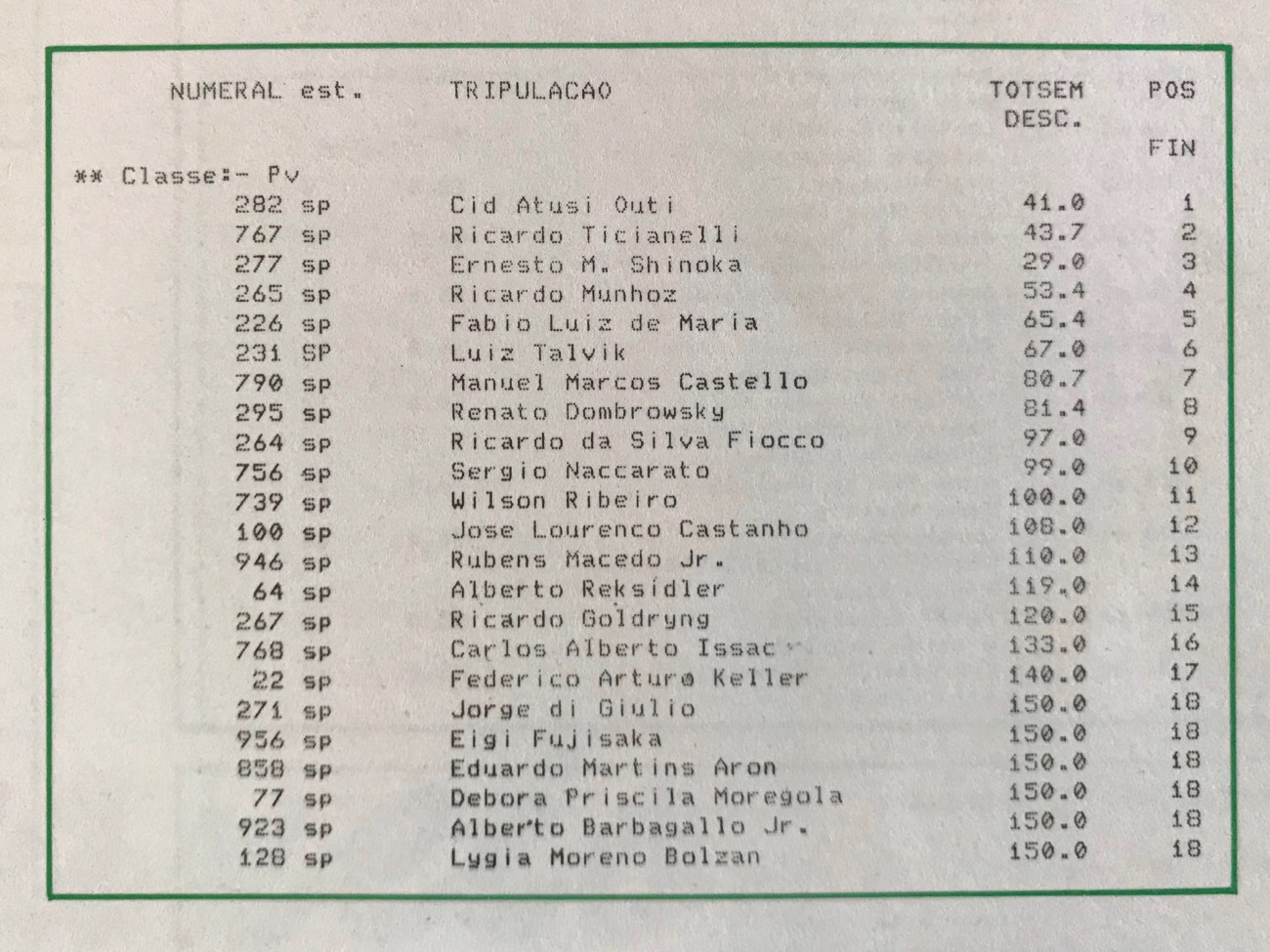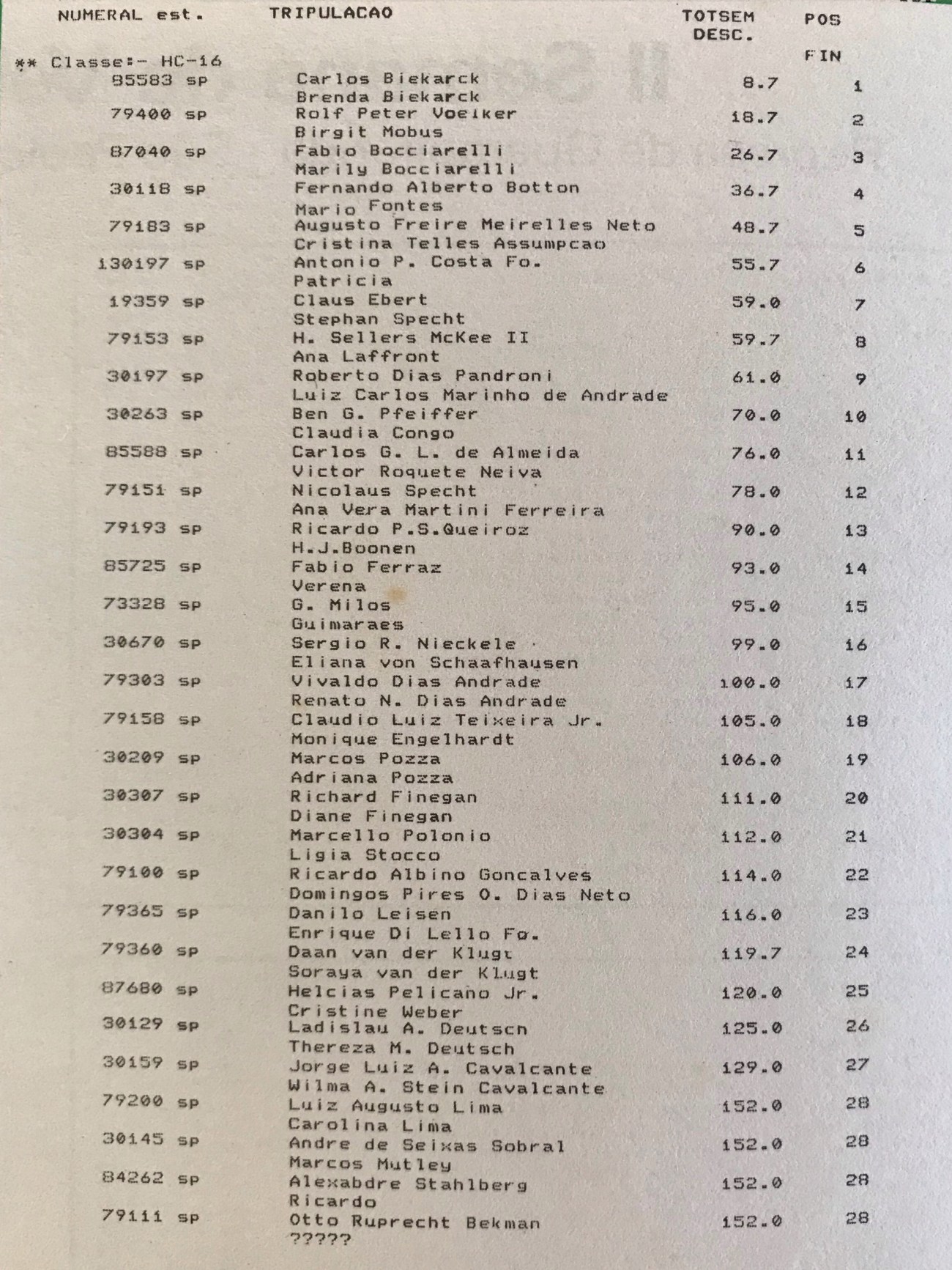 Outro dia o Peter Comber mandou umas fotos da sumula da Semana de Vela de São Paulo de 1987, a Ju, esposa dele tinha esta BOMBORDO guardada e super bem conservada! Claro que pedi emprestado pra copiar e compartilhar aqui!!!!