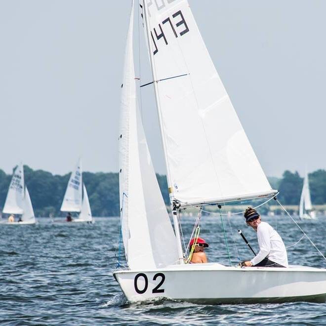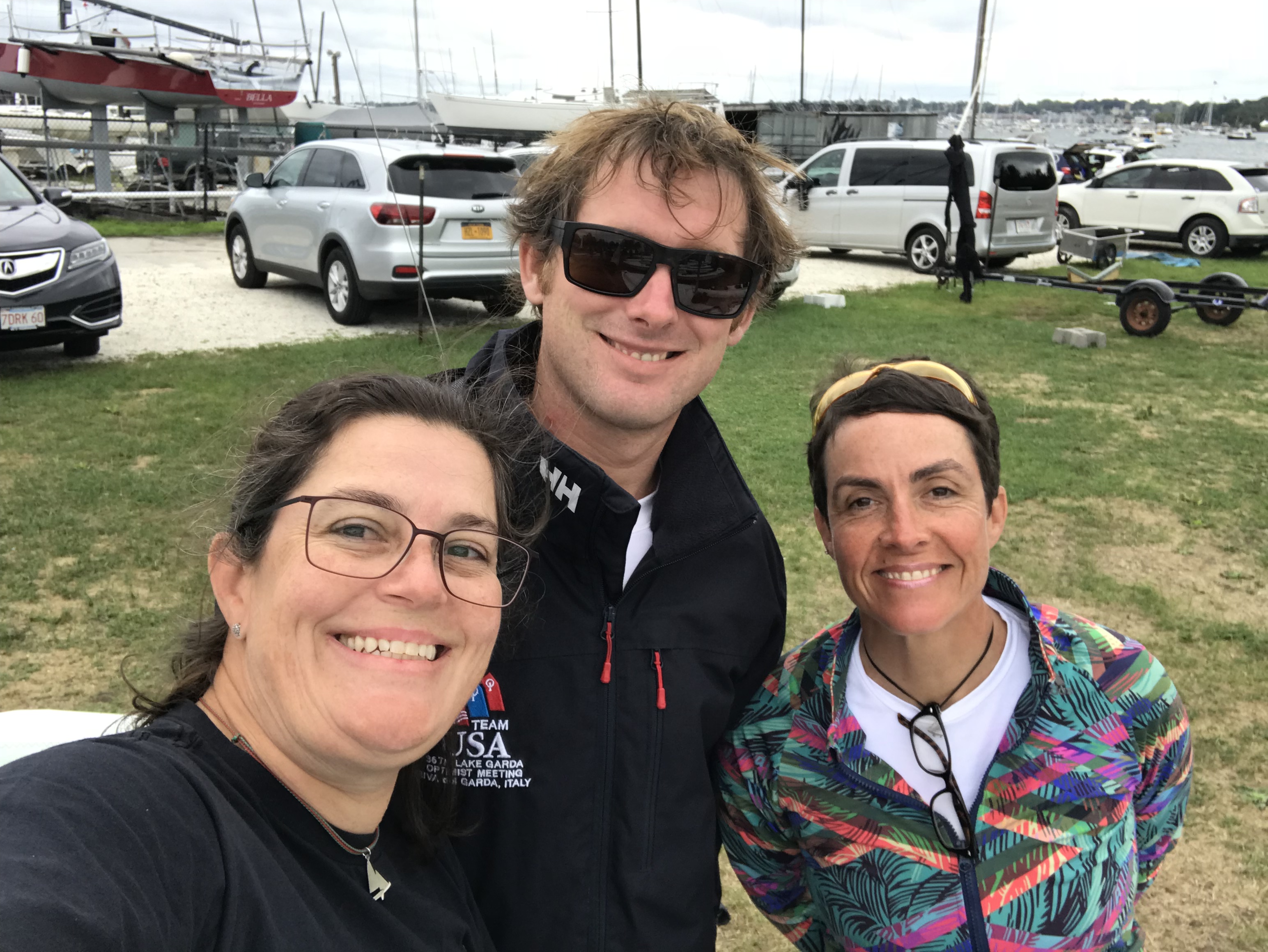 (Could not find an awesome picture of us sailing his boat in Newport, so I stole one picture of his Facebook… just to illustrate that for a coincidence both boats have light blue decks!)